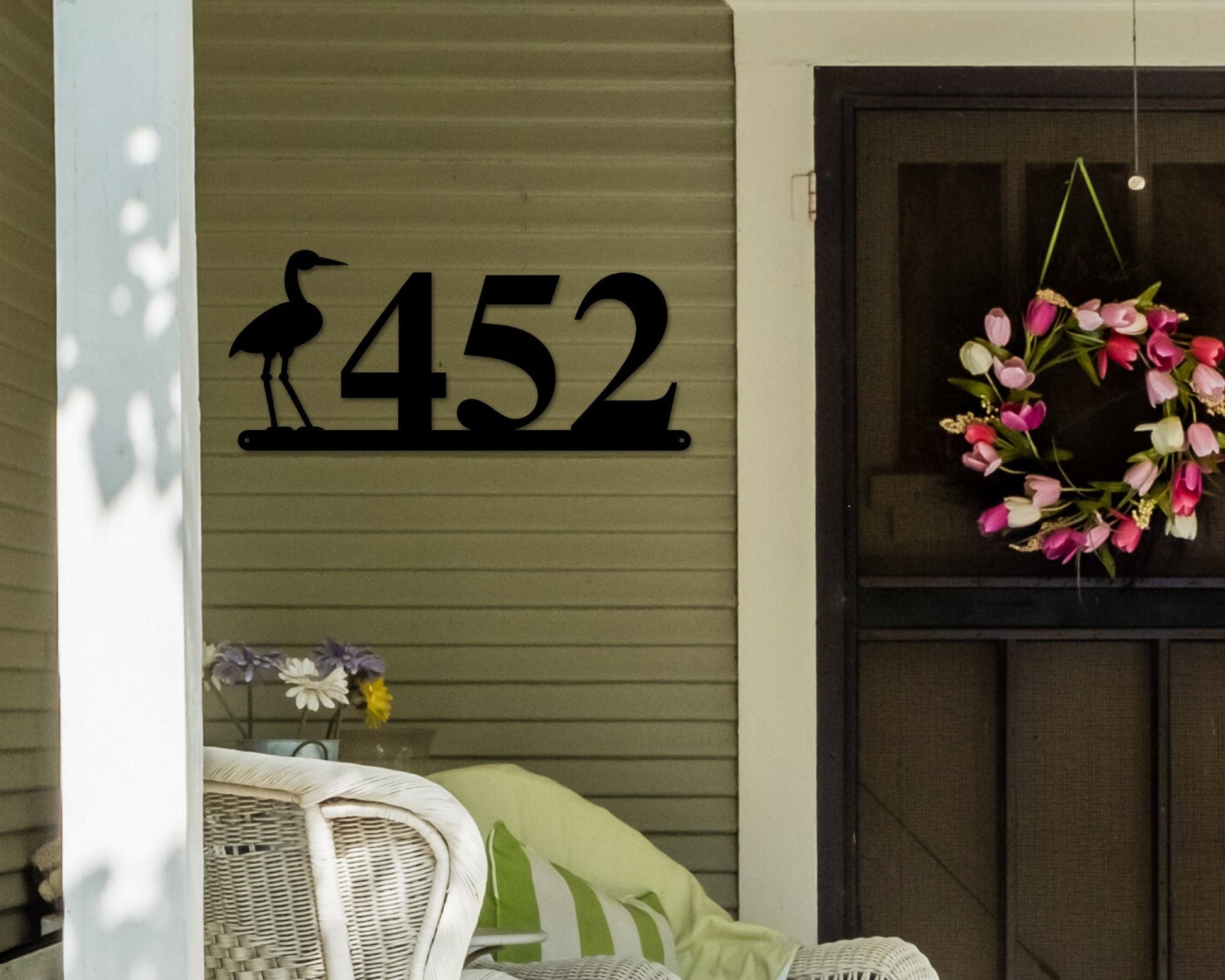 Crane Sign, Crane Address Sign, Bird House Numbers, Branch Address Sign, Porch Sign, Metal Address Sign, Metal Address numbers, Address Sign