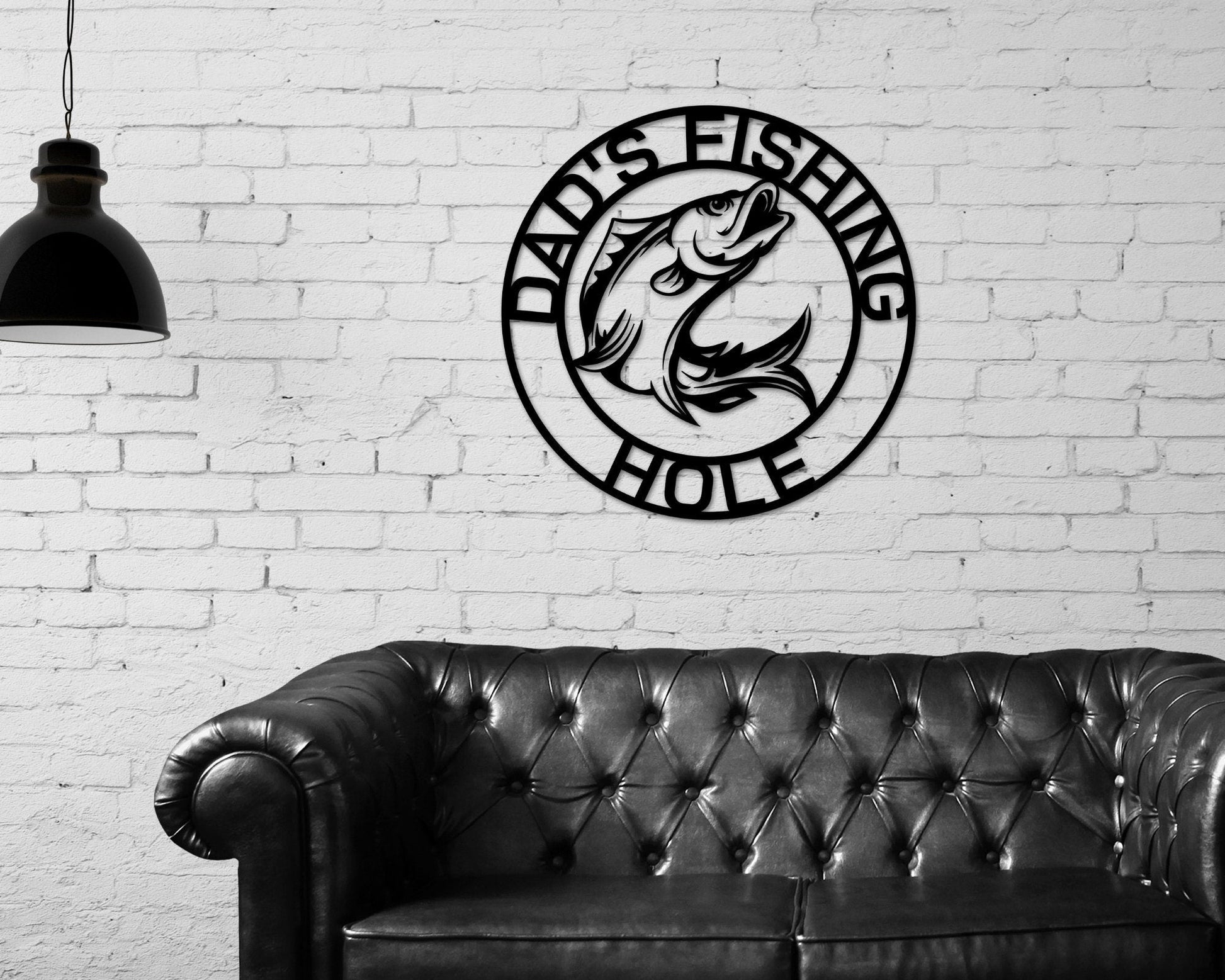This personalized fish sign is the perfect gift for any fisherman or woman in your life! This custom fish sign is made from high quality 18 gauge steel. Pre-drilled can be requested for easier hanging. Double Sided Hanging Strips can be used also for hanging. This custom fish sign is handmade in the USA and can be personalized with any name or phrase. Please enter your desired name or phrase in the "Personalization" box. This fishing sign would make a great addition to any man cave, garage, or fishing cabin. It is also a great gift for any occasion, such as a birthday, Father's Day, or Christmas. Order your custom fish sign today and show off your love for fishing! When entering your personalization please put exactly what you would like your sign to say. If you want your sign to look exactly like the listing photo, please re enter the personalization. *Please note our decor does not include hanging hardware. All of our decor sizing is calculated to the longest side (height/width) of the sign.